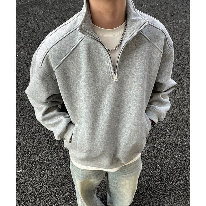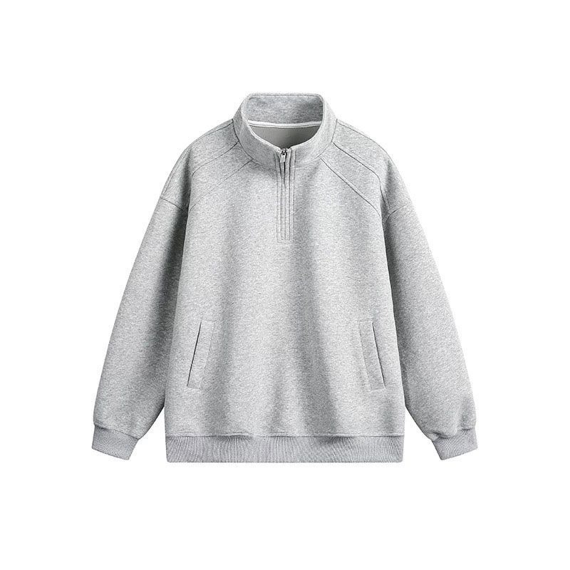 Heavyweight Cotton Stand-Collar Half-Zip Sweatshirt – Retro American Style Zip-Up Jacket