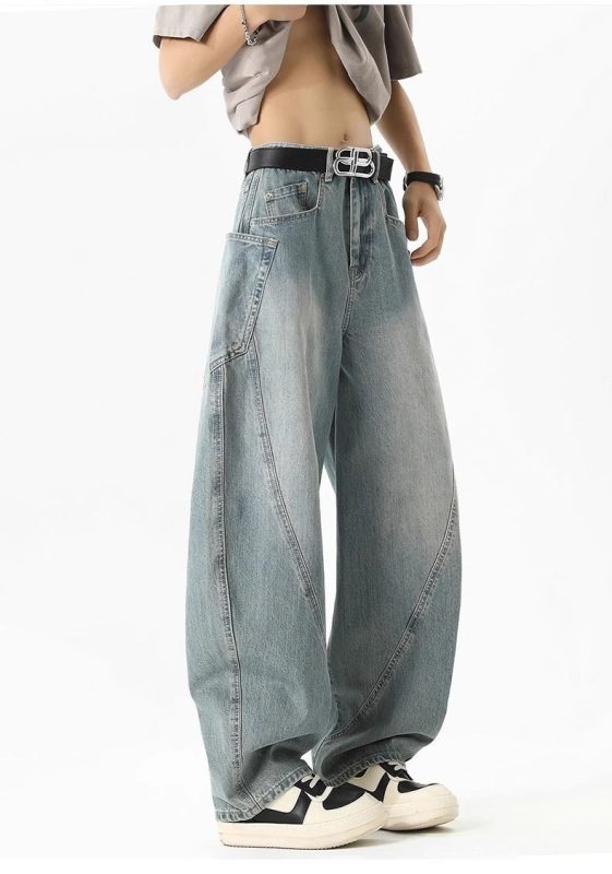 2025 Men’s Workwear Cargo Jeans – American Relaxed Wide-Leg Trousers with Curved Blade Cut